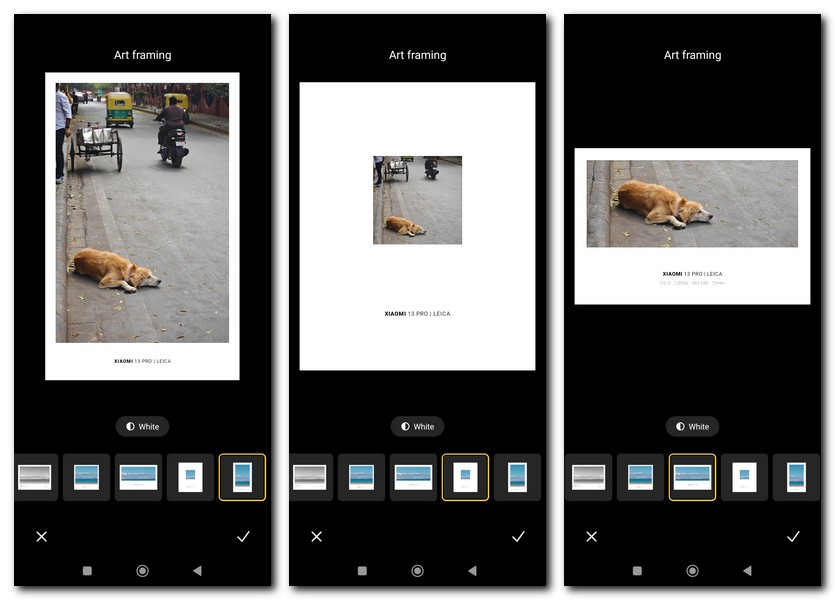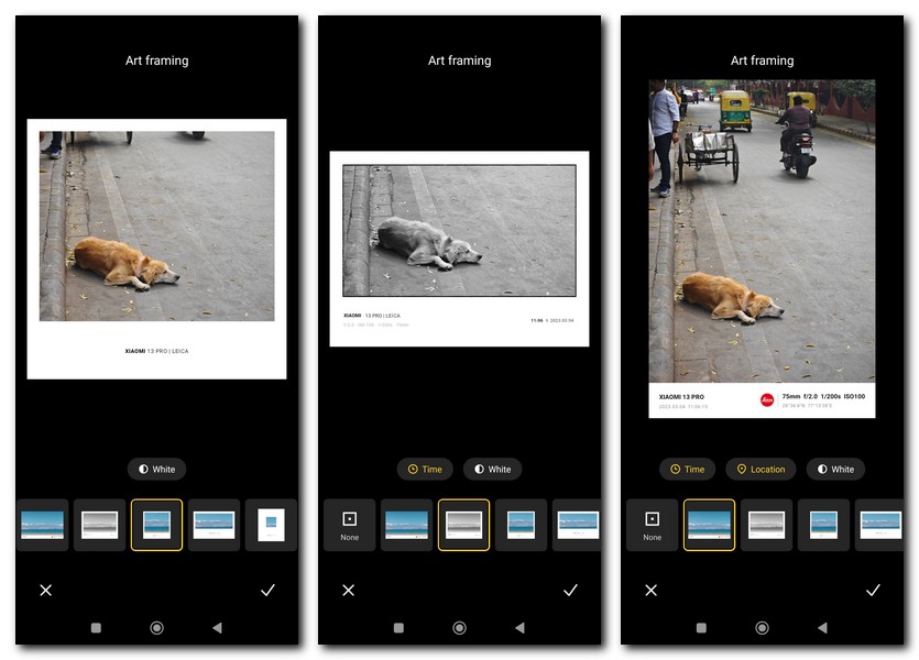 Many of the photos being used in the marketing of the Xiaomi 13 Pro come with prominent black or white borders with the Leica and Xiaomi 13 Pro branding as well as information about the photos like time, location, and lens. setting used. It looks very classy and sleek and if you fancy them, there are two ways to bring this Leica touch to your photos on the Xiaomi 13 Pro. You can add them to the images you already have on the phone by selecting the Edit option in the Photo Gallery app and then selecting the AI option. Once there, select Art Framing, and choose from one of six frame options. Another way is to get the frame from the get-go by going to Camera in the device settings, choosing Watermark, and specifying the Leica watermark there.