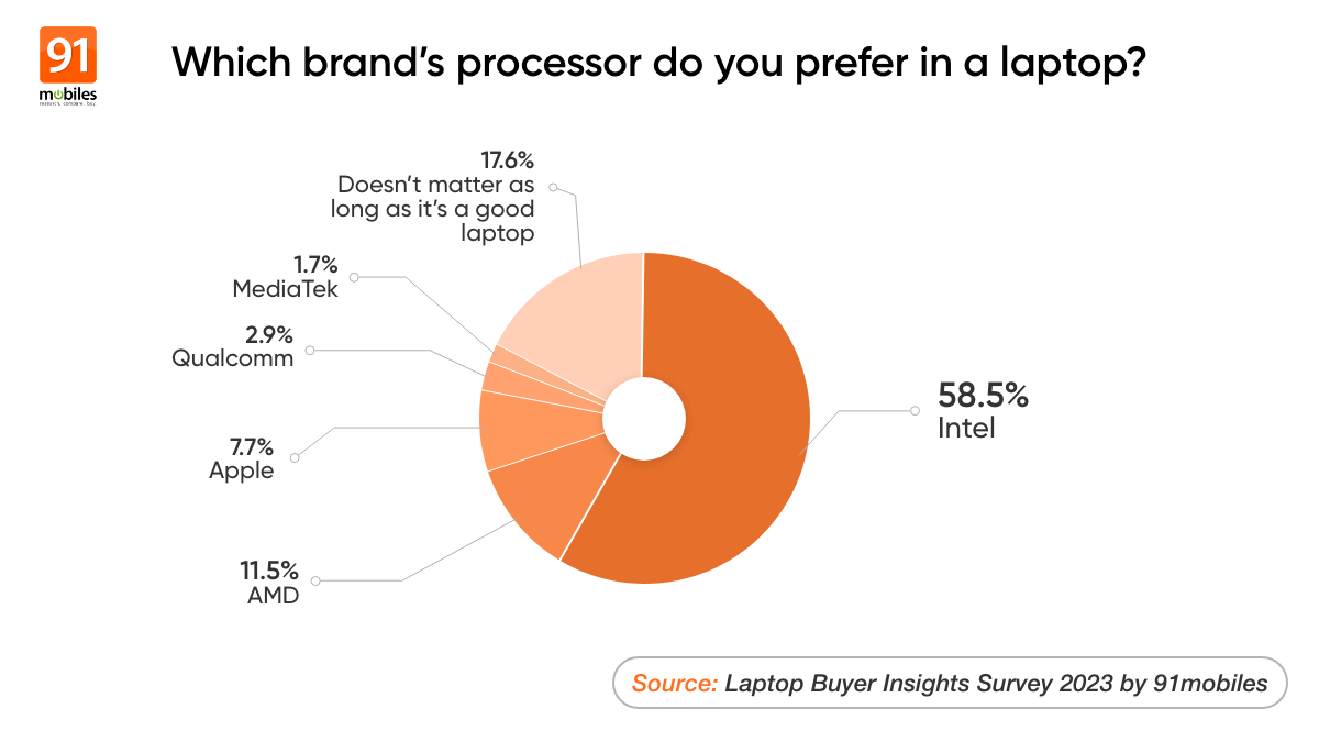 - It should be noted that 17.6 percent of respondents didn’t really care who manufactured the processor as long as the laptop was good enough.